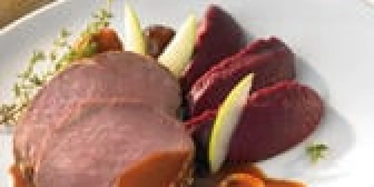 Filet de bœuf, purée de pommes et marrons caramélisés