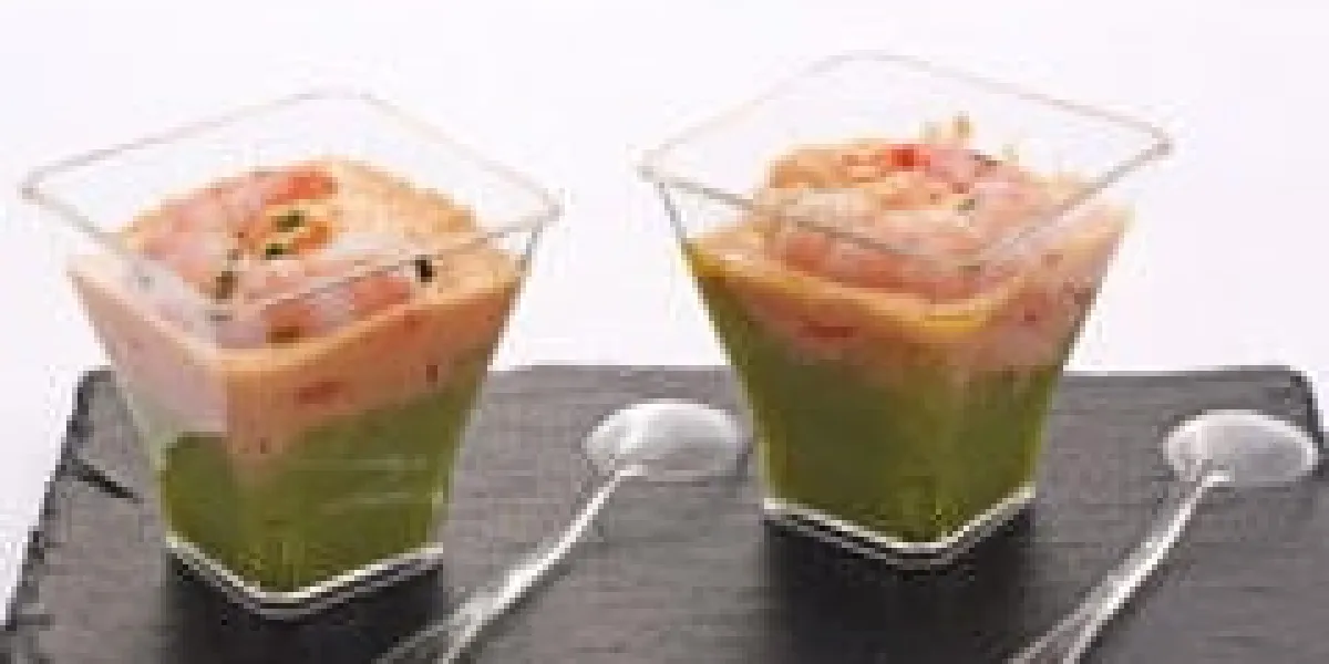 Préparation pour Purée d'avocats, sauce cocktail et crevettes en verrine