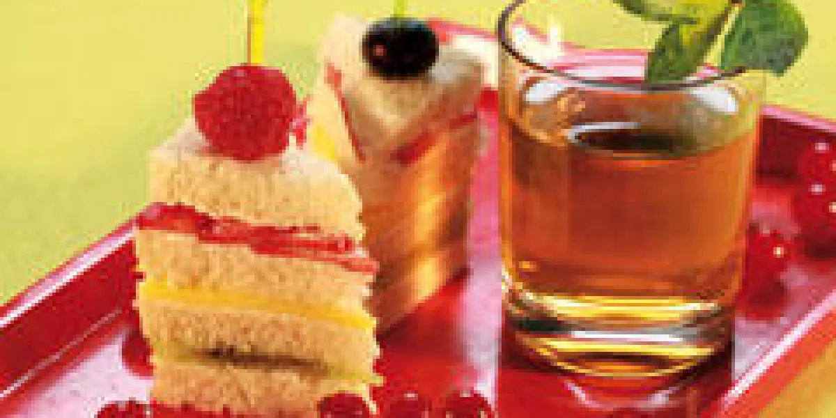 Servir le thé en tasses et les mini clubs sucrés dans de petites assiettes.