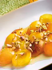 Servir les abricots tièdes accompagnés par exemple d'une glace à la pistache ou au nougat.