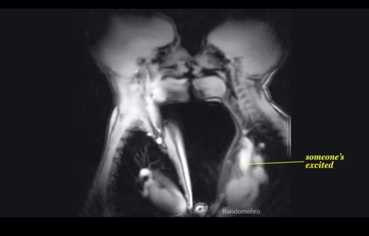 Avez-vous déjà vu la réaction du corps quand deux personnes s'embrassent ? C'est maintenant possible grâce à la vidéo du site internet VOX qui montre des personnes filmées via imagerie par résonance magnétique (IRM) ."Cette technique permet de voir à l'intérieur du corps en repérant la position des eaux moléculaires de l'organisme" expliquent les auteurs des images. Ce procédé étant moins invasif que les rayons X, les scientifiques ont pu filmer les volontaires plus longtemps que lors d'une simple radio.