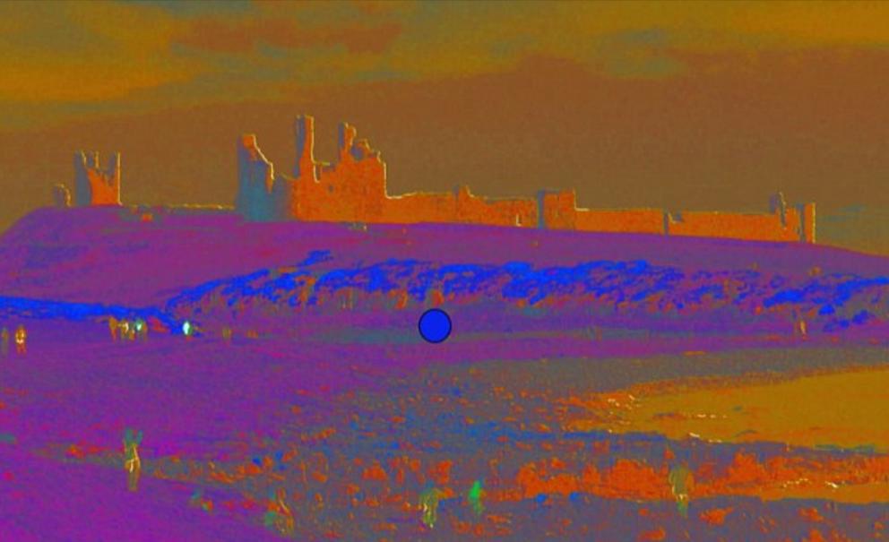 En fixant le point au centre de la première photo, les cellules cônes (situées au niveau de la rétine à l’arrière de l’œil) qui perçoivent le rouge, le vert, ou le bleu présents sur la photo se désensibilisent, fatiguent et finissent par ignorer les couleurs fixées. Mais lorsque l’image est à nouveau projetée, en noir et blanc cette fois-ci et sans le point bleu à fixer, les cônes responsables de la détection des autres couleurs remplissent la scène. Le château de Dunstanburgh se colore alors pour quelques instants, comme une sorte de "négatif" de couleurs complémentaires.