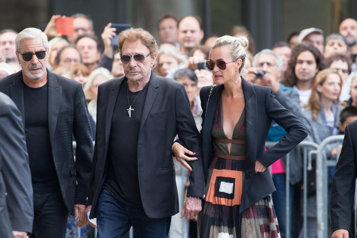 Johnny et Laeticia Hallyday le 1er septembre 2017 aux funérailles de Mireille Darc