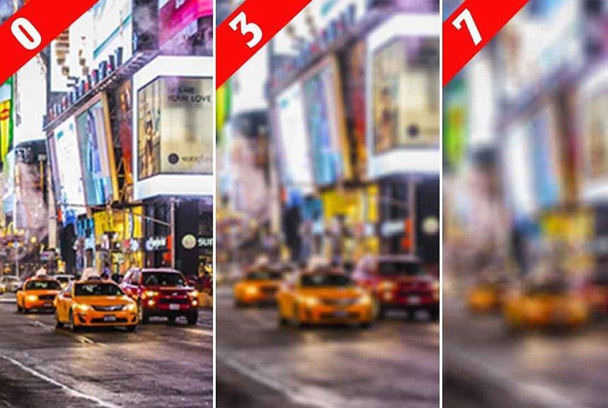 Ici, sur l’image, la partie la plus à gauche correspond à la vue d’une femme sobre. Celle du milieu traduit la vision d’une femme après consommation de trois unités l’alcool, et celle de droite après sept unités d’alcool.