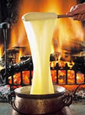 Incorporer la crème fraîche en mélangeant avec une cuillère à bois, puis rapidement 400 gr de tome fraîche en remuant énergiquement afin d'aérer l'aligot qui doit filer au bout de la spatule en formant un ruban. On peut, si on le désire, parfumer encore d'une gousse d'ail entière écrasée.