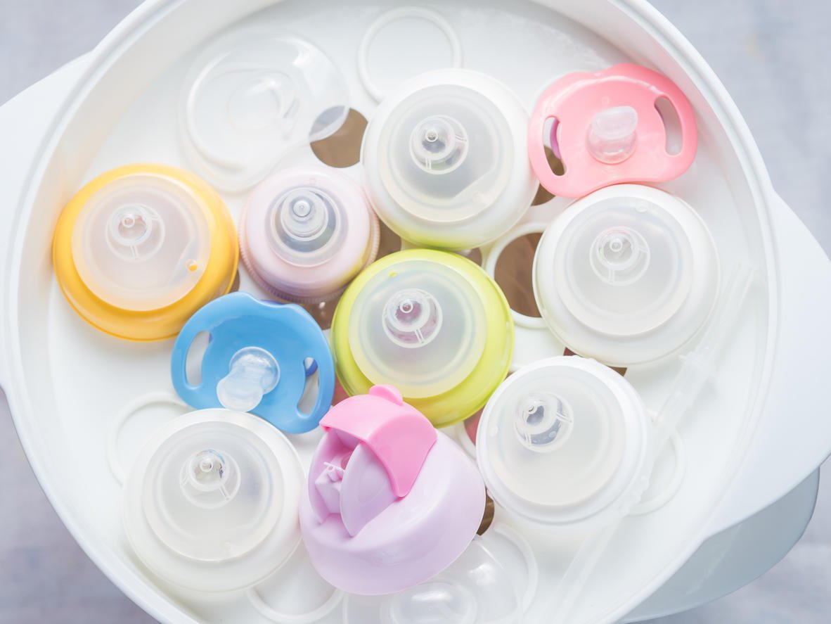 Ce type de stérilisateur est assez compact et transportable. Il permet le processus le plus rapide : en 5 minutes, les biberons peuvent être stérilisés. Pour l'utilisation, il convient de remplir le bac d'eau dans lequel sont placés les biberons, de refermer avec le couvercle, puis de placer le tout au micro-ondes. Le prix oscille entre 20€ et 60€. Et si vous ne voulez pas investir dans un stérilisateur, vous pouvez toujours utiliser la bonne vieille méthode de la stérilisation au bain-marie.