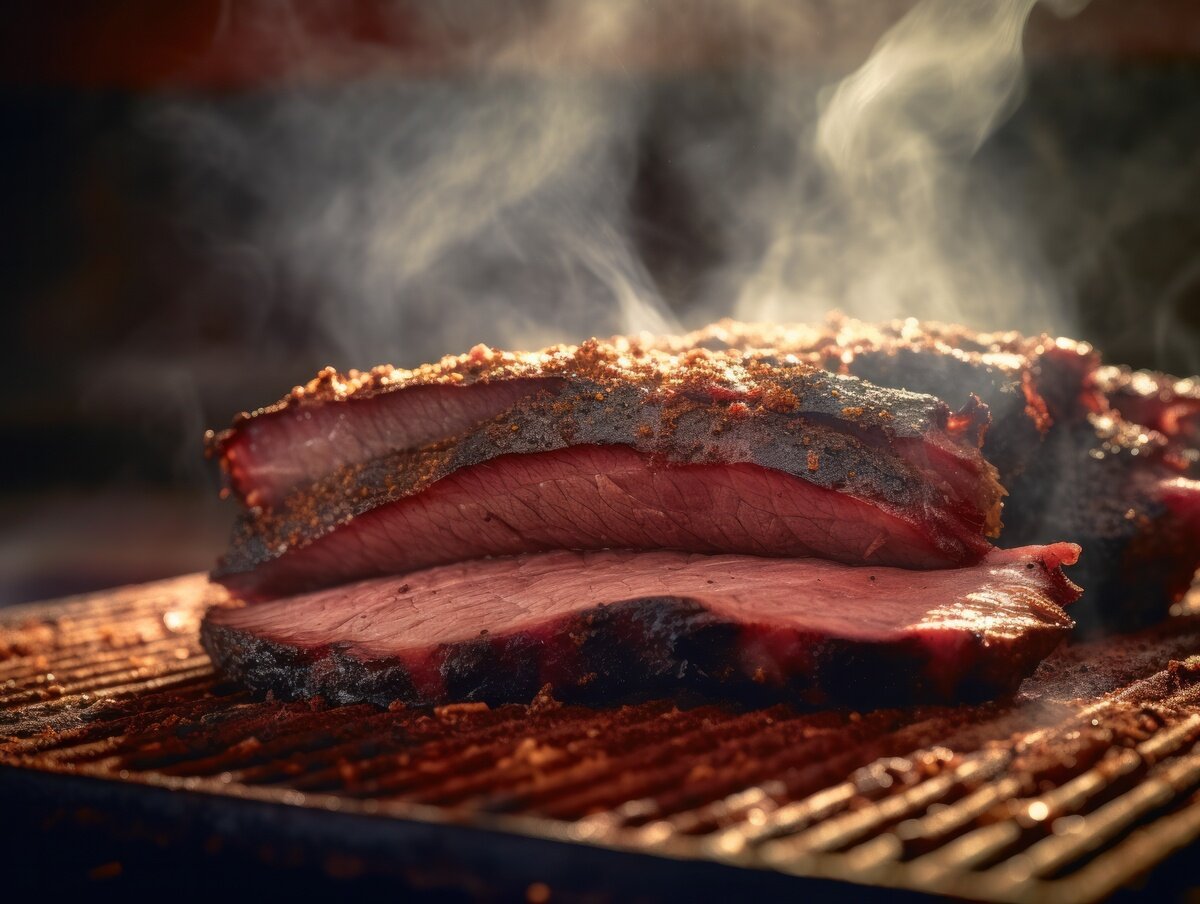 tasty looking brisket bbq from the smoker and well rested, generative ai
