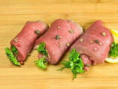 Fermer les tranches de paleron en les enroulant sur elles-mêmes. Les piquer avec un cure-dents.