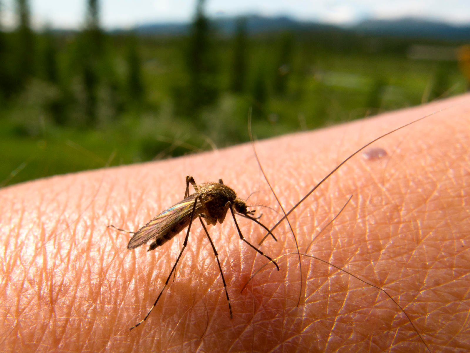moustique assoiffé de sang du territoire du yukon prêt à piquer le bras humain