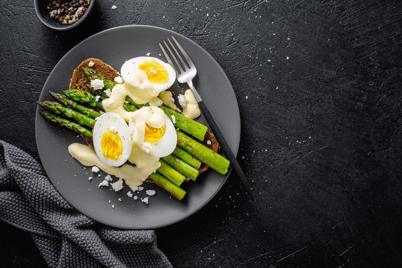 Asperge blanche et vinaigrette aux œufs mimosas