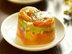 Astuce : Pour démouler facilement les aspics de crevettes, placer le fond des petits pots pendant quelques secondes dans de l'eau chaude.