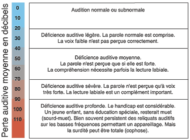 Les différents degrés de perte auditive :
