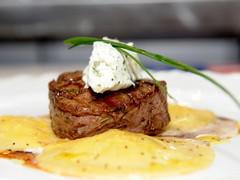 9. Disposer sur chaque part une à deux rondelles de beurre Maître d’Hôtel et présenter à part gros sel et poivre noir au moulin.