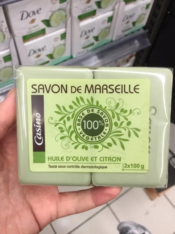 Attention, l'allégation "huile d'olive" peut être trompeuse. "Seuls les savons dont la liste d’ingrédients commence par 'sodium olivate' sont réellement fabriqués à partir de grignons d’olive. Les autres ajoutent une goutte d’huile pour le marketing[...]. Casino nous font le coup de la goutte d’huile d’olive dans un océan d’huile de palme", soulève l'UFC.