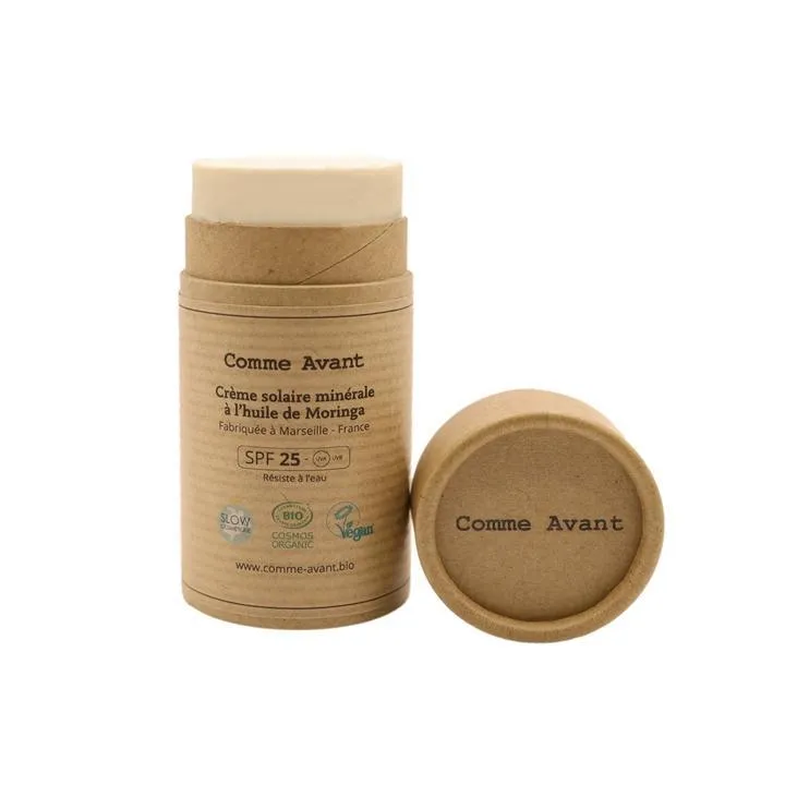 La crème solaire solide bio et minérale à base d'huile de Moringa.