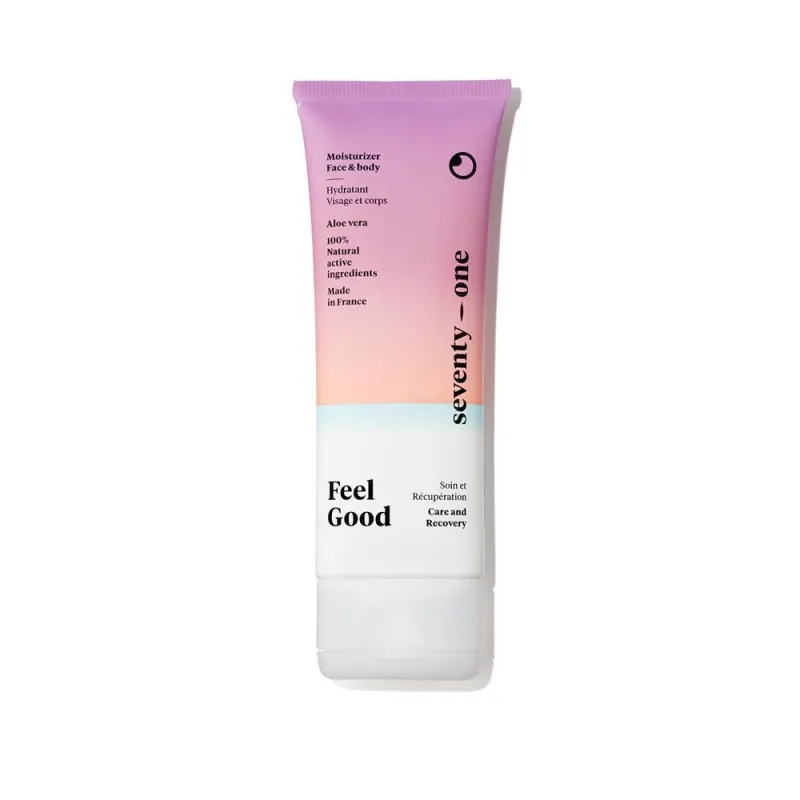 Crème "Feel Good" après-soleil pour le visage et le corps. A base d'aloe vera, elle appaise la peau et l'hydrate après l'exposition.