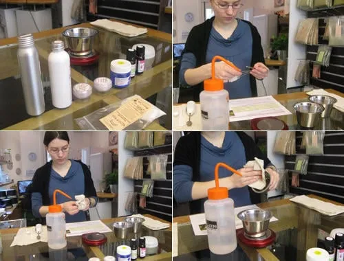 Avant de commencer, lavez-vous les mains soigneusement à l’eau et au savon. Désinfectez ensuite chacun des ustensiles avec une solution alcoolisée pour éliminer germes et bactéries, et ainsi ne pas contaminer votre préparation. Vous pouvez, si vous le désirez, enfiler une paire de gants stériles pour réaliser votre crème antirides.