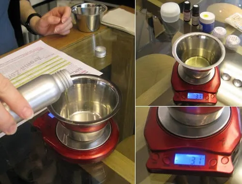 Dans un bol, versez l’huile de bourrache (3,1g). Si vous n’avez pas de balance suffisamment précise, vous pouvez utiliser une pipette graduée pour mesurer la juste quantité de liquide (3,4ml).