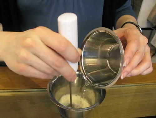 Dans un deuxième bol, mesurez l’équivalent de 24,2g (ou 24,2ml) d’hydrolat de bleuet.