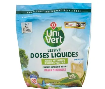 6 - Lessive en capsules Uni Vert (E.Leclerc) Peaux sensibles