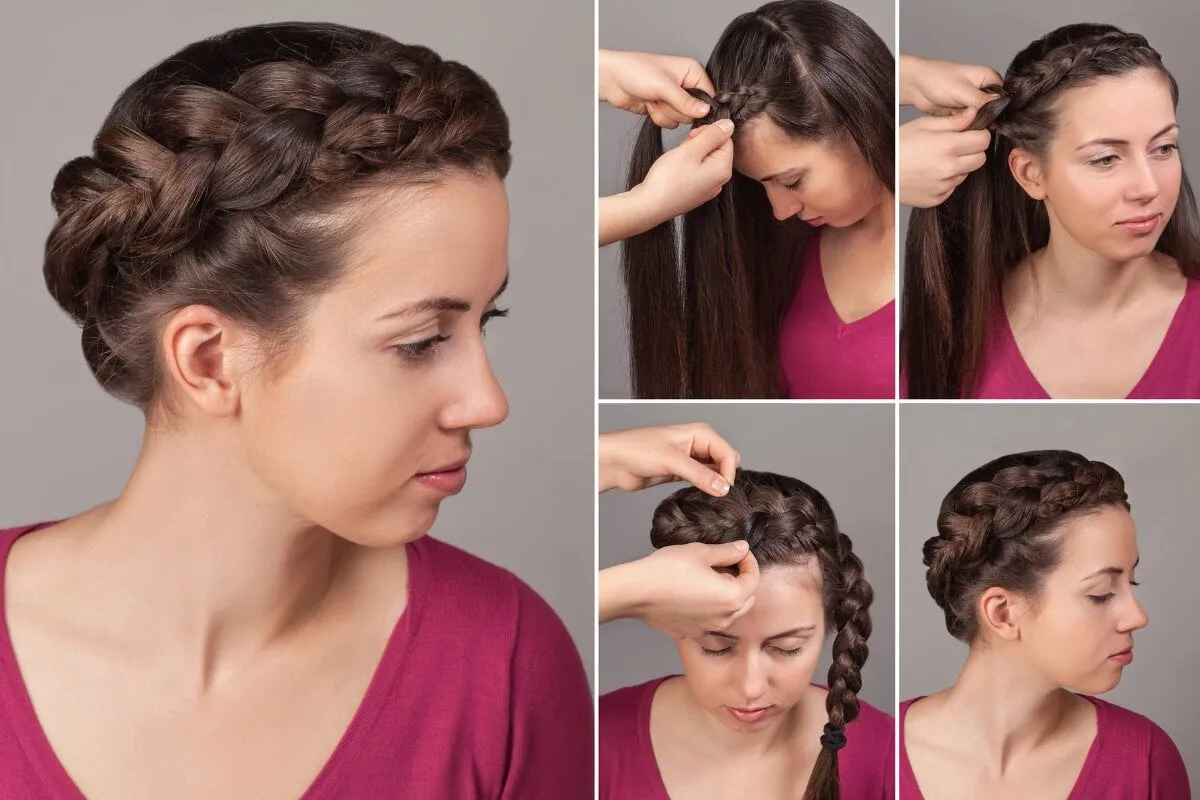 Enroulez la tresse autour de la tête pour former la couronne, en plaçant l'extrémité de la tresse derrière la tresse de départ.