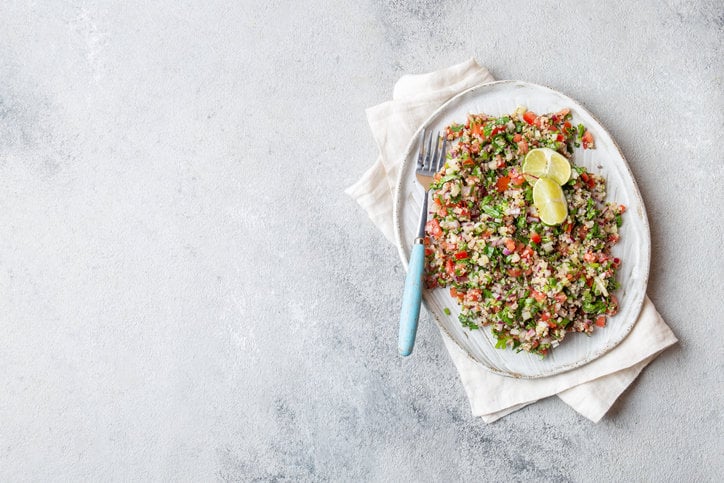 Riches en minéraux, en vitamines, protéines et sans gluten, le quinoa contient très peu de calories : 116 kcal pour 100g. C'est un bon choix car ce féculent renferme autant de fibres que les céréales complètes et augmente la sensation de satiété.