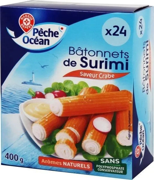 Pêche Océan (Marque Repère E.Leclerc) Bâtonnets de surimi Saveur crabe : 8,5/20
