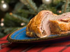 Déposer le filet de boeuf sur la pâte et l'envelopper en appuyant sur les bords de la pâte pour les souder et en repliant les extrémités par-dessous.