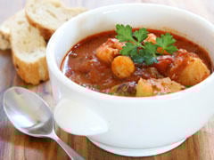 Verser la bouillabaisse dans la soupière, sur les croûtons. Servir accompagné de l'aïoli dans son mortier.