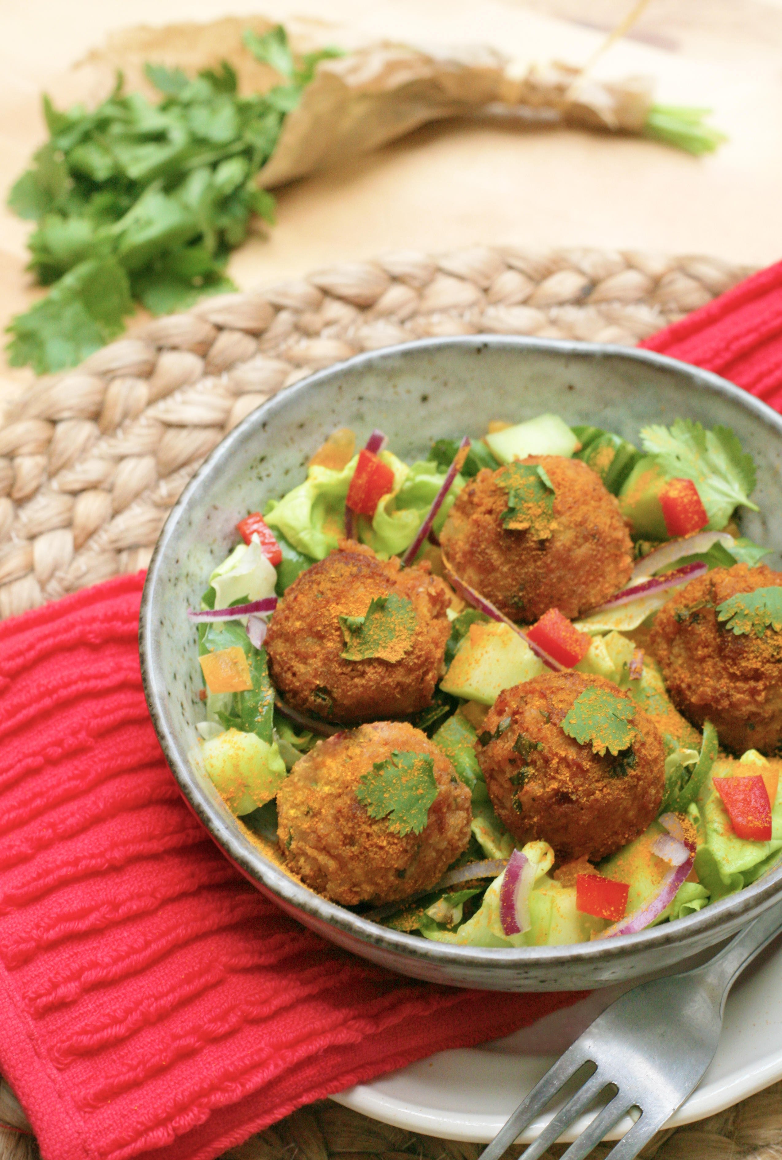 7- Formez une quinzaine de boulettes de la taille d’une noix, en les pressant bien. Placez les boulettes sur une plaque recouverte de papier cuisson. Enfournez 30 minutes.