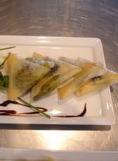 - Refermez les feuilles de brick pliez les de manière à former un triangle et dorez avec le jaune d'oeuf restant.