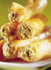 Utiliser le beurre fondu pour graisser 1 feuille de brick après l'avoir coupée en deux. Pour un pliage en forme de cigare, déposer un tube de garniture sur l'extrémité inférieure de la feuille. Refermer les bords à droite et à gauche de la farce. Commencer à enrouler. Déposer un peu de pâte-colle sur les derniers 2 ou 3 cm de la pâte et finir d'enrouler le cylindre sur lui-même. Poser le cigare sur un plateau, côté collé contre le support. Procéder ainsi jusqu'à épuisement des feuilles et de la garniture.