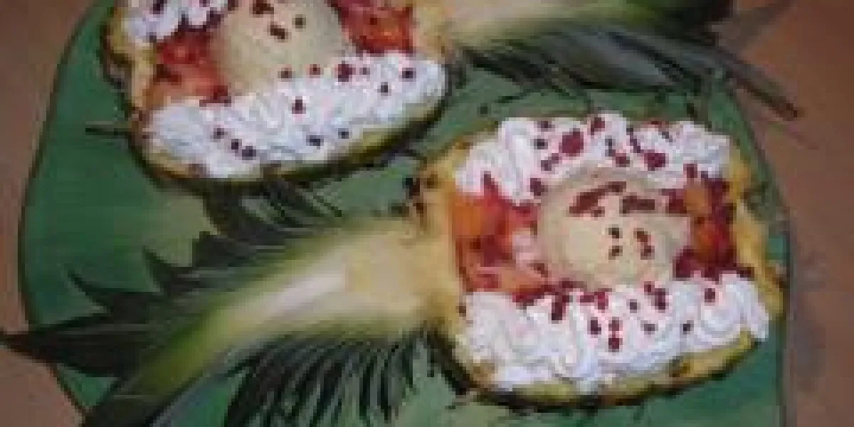 Préchauffer le four à 240 °C (thermostat 8). Sur le feu, faire cuire le riz dans l'eau salée pendant 15 min environ. Le rafraîchir immédiatement sous un filet d'eau froide et l'égoutter. Dans un plat allant au four, mélanger le beurre, le maïs, le riz et 50 g d'ananas. Réserver.