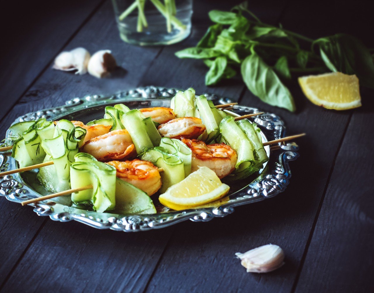 Nos suggestions pour Brochettes crevettes et concombre à la menthe