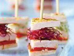 Nos suggestions pour Brochettes de dinde aux pousses de radis façon mini club-sandwichs
