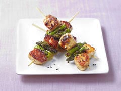 Brochettes de lapin et leurs pointes d’asperges vertes