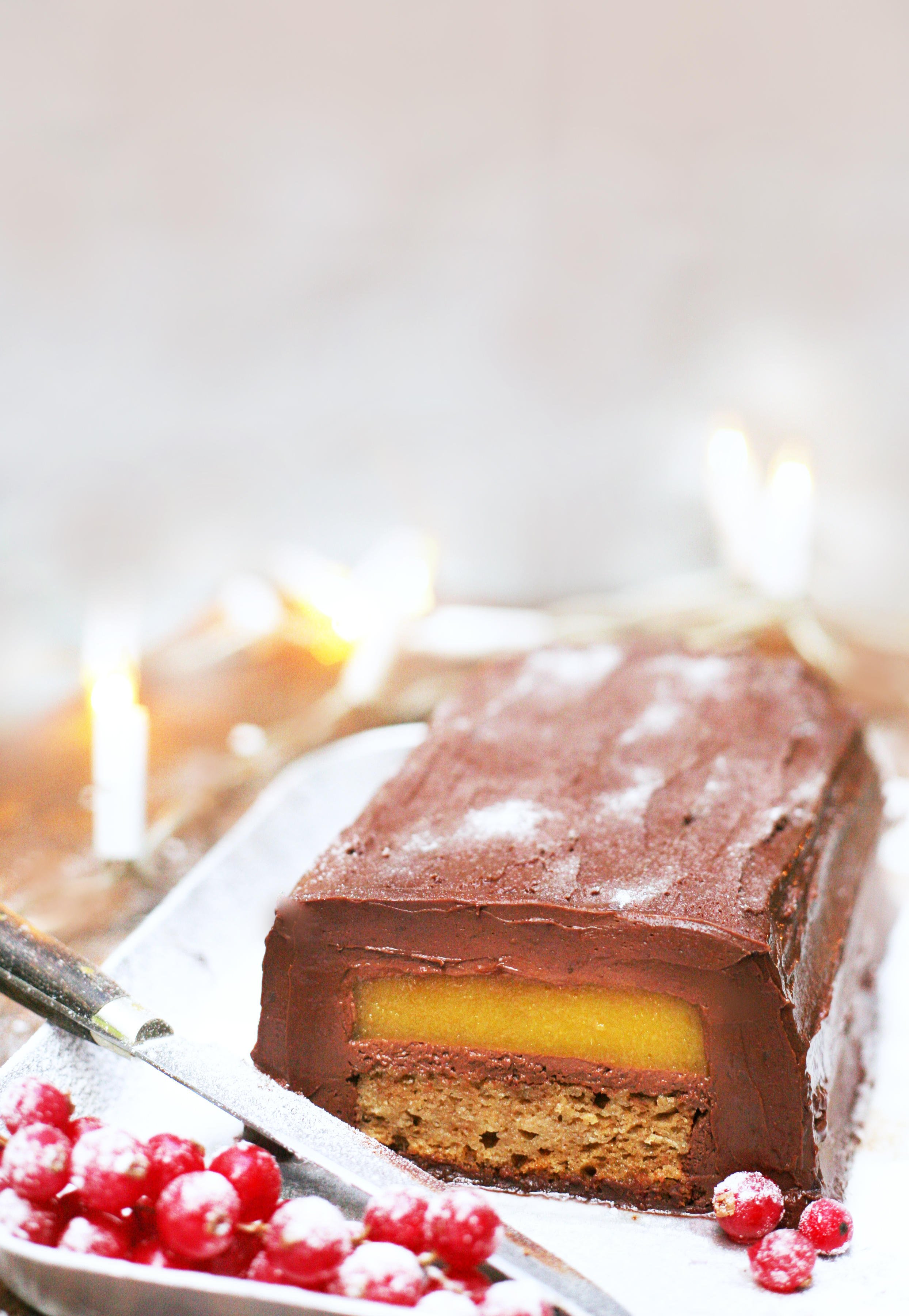 - Pour le service, enlever le film et démouler la bûche sur un plat. Retirer le film qui entoure la bûche et lisser la bûche. Et pour plus de gourmandise, découper de fines lamelles de gingembre confit et placer-les sur le dessus de la bûche. Saupoudrer avec le sucre du gingembre confit.
