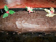 Etaler ce glaçage sur le biscuit roulé et décorer à l'aide d'une fourchette.