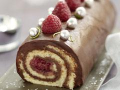 Préparation pour Bûche roulée au chocolat, framboise biscuit, coco citron vert