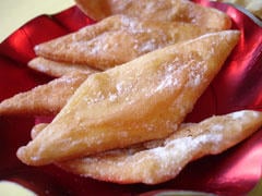 Le lendemain, faire chauffer l'huile dans la friteuse. Récupérer la pâte et la travailler rapidement pour l'assouplir un peu. L'étaler et y découper les morceaux de la forme (lanières, triangles...) que vous voulez.