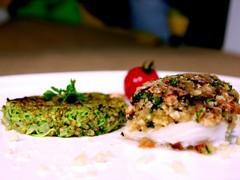 Cabillaud en croûte d’amandes et galettes de quinoa