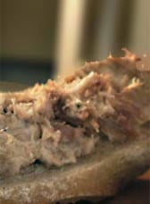 Préparer les tapas : Faire un hachis d'ail et de persil. Mélanger les miettes de thon et l'aïoli. Couper des fines tranches de pain.