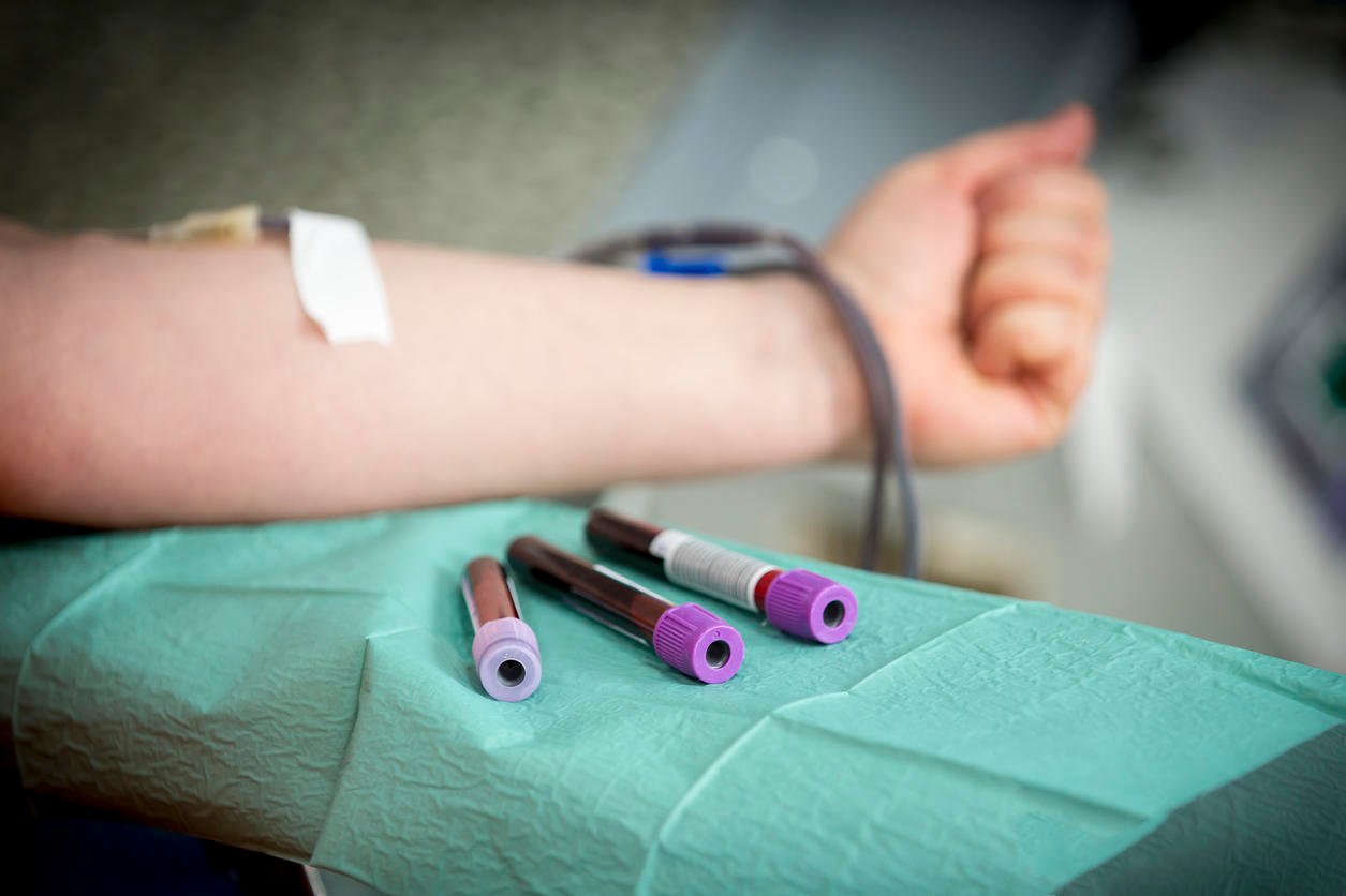 the hand of a woman who donates blood female donor gives blood in a mobile blood donation center blood samples