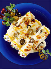 Pour la préparation de la béchamel, faire fondre le beurre dans une casserole, le mélanger à la farine avec un fouet, ajouter le lait chaud, une pointe de noix de muscade, le sel et porter à ébullition. Ajouter les olives coupées en rondelles.