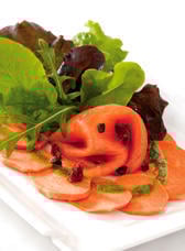 Nos suggestions pour Carpaccio patate douce, saumon fumé et son mesclun