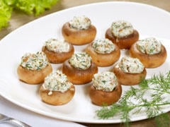 Disposer les têtes de champignon dans un plat allant au four avec un verre d'eau au fond. Les farcir avec la préparation.