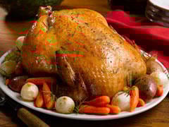 Sortez le chapon du four, recouvrez-le de papier aluminium pendant 10 minutes.