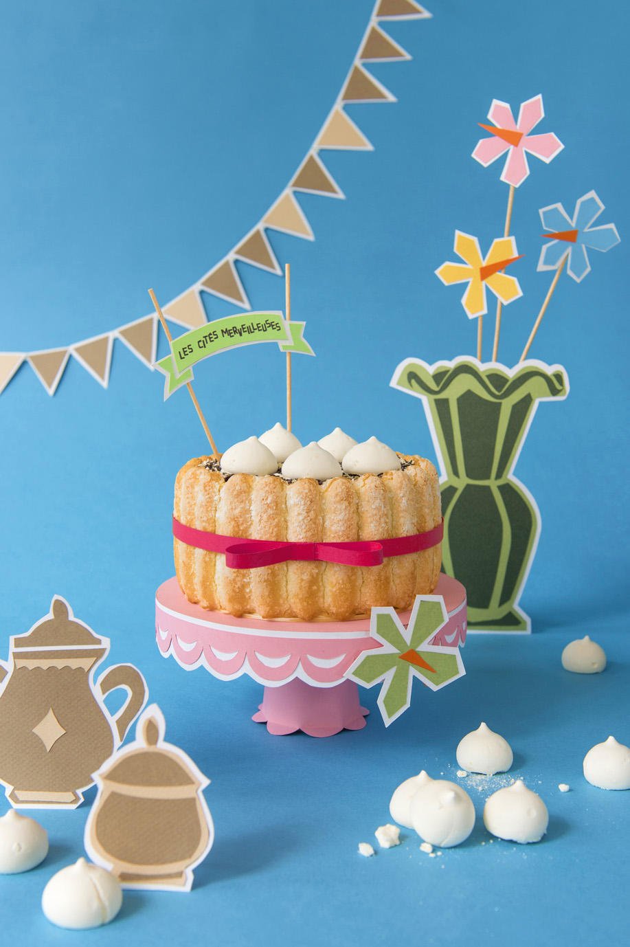Ingrédients Charlotte vanille, deux chocolats et meringues croustillantes