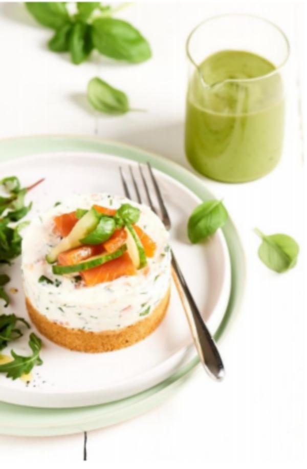 Ingrédients Cheesecake au saumon, smoothie avocat et concombre