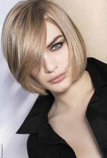 Avec une mèche longue et épaisse qui vient jouer avec le regard, cette coupe est parfaite pour capter la lumière et mettre tous les blonds en valeur.